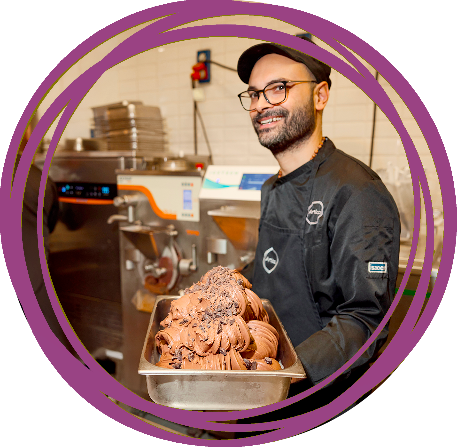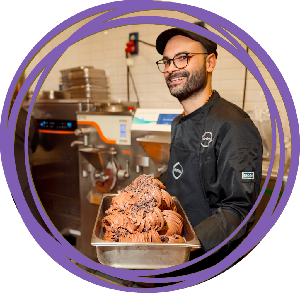 Classe 1988, napoletano di nascita e milanese d’adozione, entra in Artico nel 2016. Dalle vendite passa presto al laboratorio guidato da Maurizio Poloni, formandosi anche nella scuola Artico. Nel 2025 diventa supervisore di produzione di tutti i laboratori dei punti vendita Artico; oggi il laboratorio è la sua seconda casa e insegna tecniche pratiche ai futuri gelatieri in Artico Scuola.